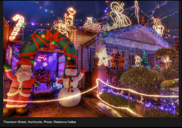 Last night I got my three year old out of bed and into the car gave him his first ever glow stick and drove him down the road to see the Northcote christmas lights. It was beyond amazing, he couldn't believe his eyes and neither could I. You can walk around the front yard engulfed in flashing bulbs and inflatable nativity scenes.